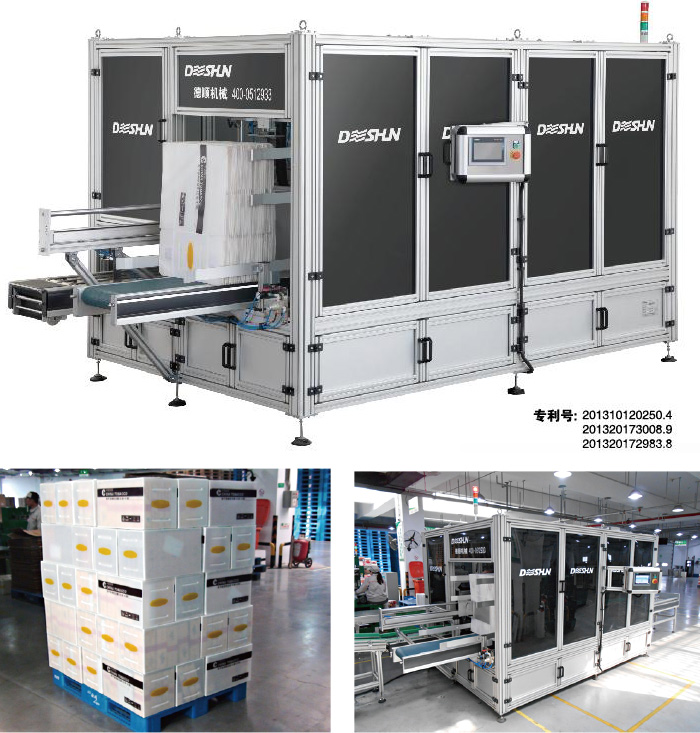 碼垛裝箱一體集成,機(jī)構(gòu)緊湊,運(yùn)行穩(wěn)定、高效。