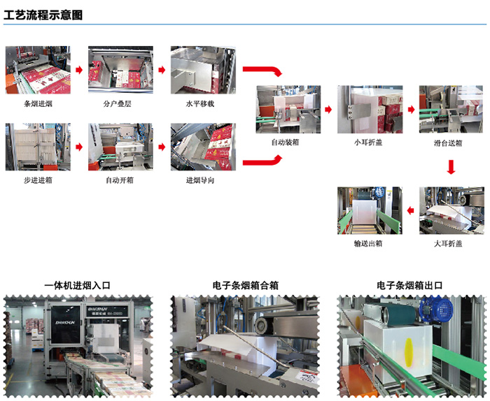 自動(dòng)送箱,自動(dòng)開箱,自動(dòng)分包碼垛,(自動(dòng)條煙校核),(自動(dòng)拍照追溯),自動(dòng)裝箱,自動(dòng)送箱,自動(dòng)合箱,自動(dòng)出箱,(數(shù)據(jù)讀寫)。